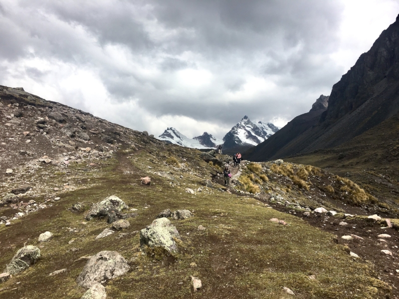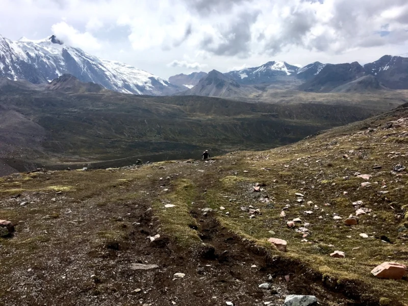 With the campsite above 15,000 ft. the night prior, some of us were still feeling the effects of the high altitude, so the way over the mountain pass (another 16,000 ft) was slow going. I sent my backpack with a horse so I'd have the energy to focus on the steps without the added weight. This also meant that my water, sunscreen, and lip balm were with the horse instead of being used by me. The lips and nose would suffer later for this lack of planning, but I was thankful in the moment to be without the extra pack weight.